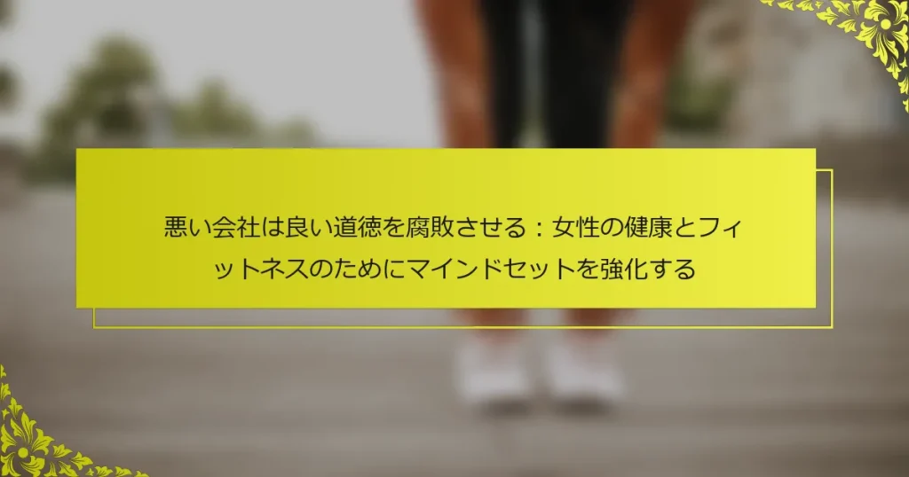 ネガティブな影響は、有害な行動や考え方を促進することで、女性の健康とフィットネスを損なう可能性があります。この記事では、サポートのある人間関係、レジリエンスを高める技術、目標設定の戦略を通じて、心の持ち方を強化する方法を探ります。ポジティブな仲間に囲まれることの重要性と、それがあなたの全体的な幸福に与える影響を学びましょう。メンタルの強さを高め、持続的な健康とフィットネスの成功を達成するための効果的な実践を発見してください。