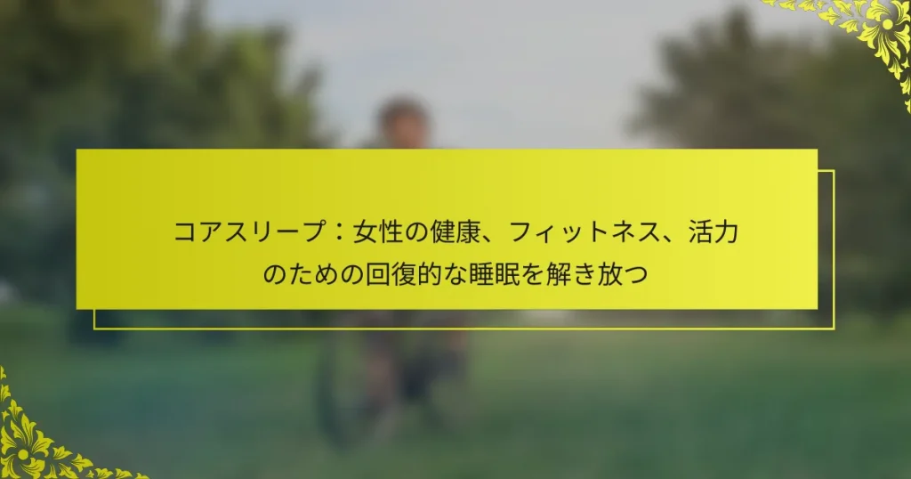 コアスリープは、女性の健康、フィットネス、活力を向上させるために不可欠です。この記事では、回復的な睡眠の重要性、ホルモンの変動の影響、睡眠障害の普及、睡眠の質を改善するための効果的な戦略について探ります。これらの要因を理解することは、女性が睡眠を優先し、全体的な健康を向上させるために重要です。
